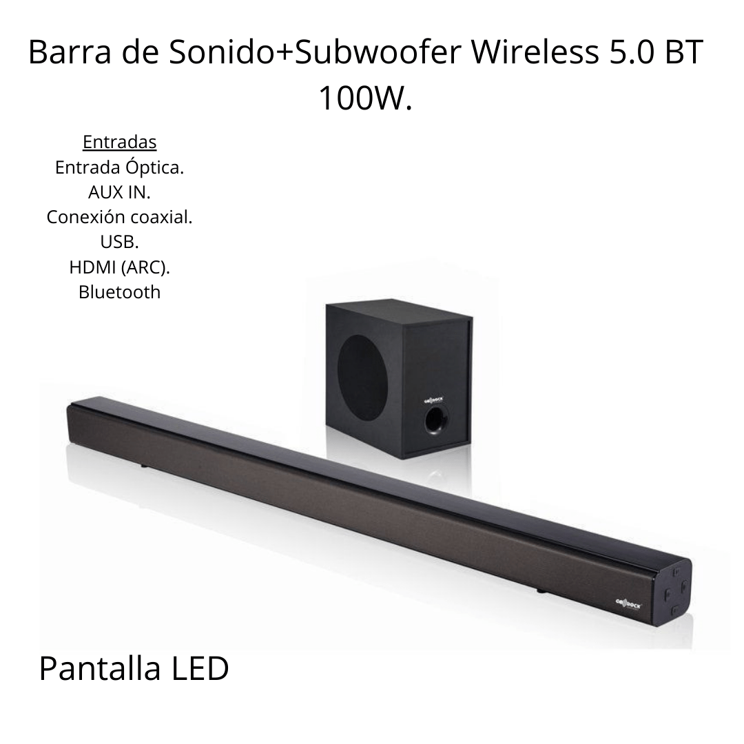 Barra de Sonido+Subwoofer Wireless 5.0 100W. Home Cinema
