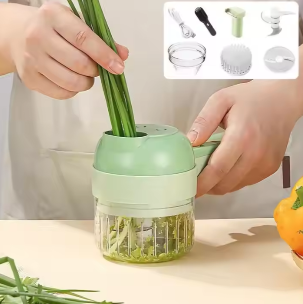 Esta Picadora Multifuncional 4 en 1 te permitirá cocinar de manera eficiente y rápida, remplazando tu tabla de cortar y cuchillo. Reduciendo el tiempo dedicado en más de un 80%. Ofrece todas las funciones de múltiples electrodomésticos con cuchillas de acero inoxidable intercambiables.